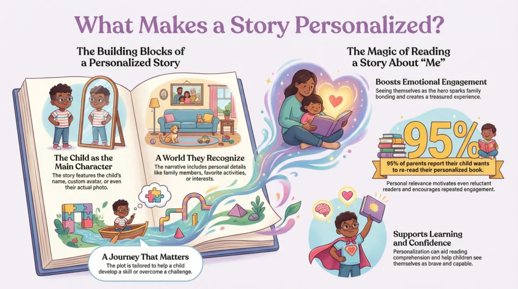 व्यक्तिगत कहानियाँ मनोरंजन से कहीं अधिक करती हैं - वे एक बच्चे के भावनात्मक विकास और सीखने को उन तरीकों से मजबूत करती हैं जो पारंपरिक किताबें नहीं कर सकतीं।.