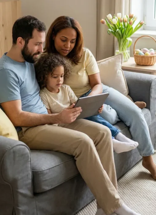 Può essere laico e incentrato sulla famiglia. La storia può incentrarsi sul calore primaverile, sullo stare insieme e sulle tradizioni semplici. Se preferisci un tono neutro, mantieni la storia incentrata sulla casa, sulla famiglia e sulla gentile curiosità.