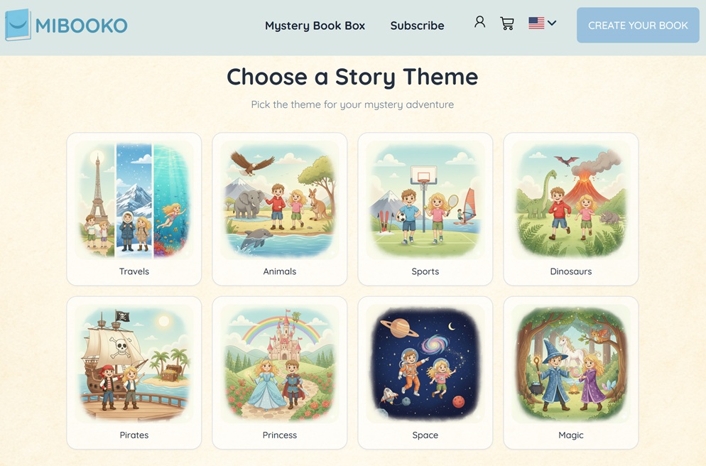 U kiest het thema van de serie en wij creëren verhalen waar uw kind dol op zal zijn, allemaal verpakt met een vleugje mysterie.